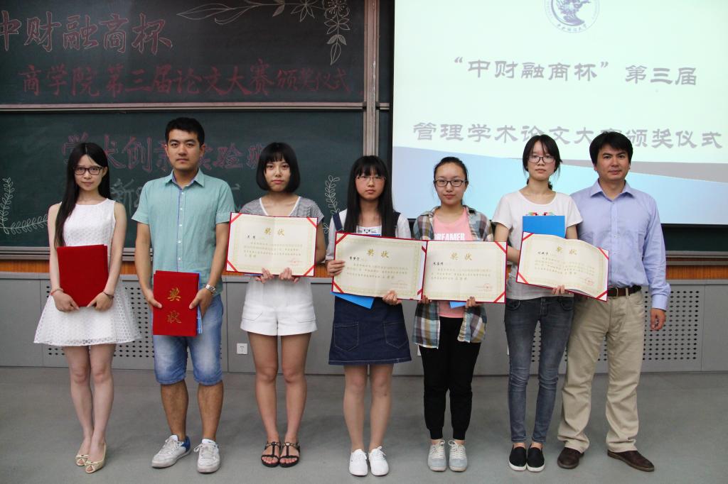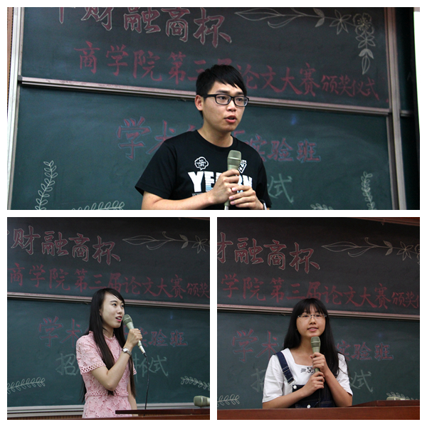 为激发学生参与学术创新的热情,表彰在学术论文大赛中取得的优秀成果,不断提升我院学生学术发展水平,2016年6月16日 “中财融商杯”开云kaiyun官方网站第三届管理学术论文大赛颁奖仪式暨学术创新实验班总结及招生宣讲会在沙河校区学院四号楼107报告厅顺利召开。开云kaiyun官方网站院长兼MBA教育中心主任王瑞华教授,开云kaiyun官方网站党总支副书记林嵩教授,中财融商(北京)资本管理有限公司、开云kaiyun官方网站MBA校友会会长冯大任先生,中财融商(北京)资本管理有限公司执行董事邱滢霏女士,开云kaiyun官方网站团总支书记王婷婷及14级辅导员米洁出席。